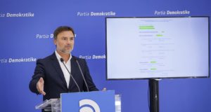 I biri i kreut të PD, Shkëlzen Berisha ndau një foto me të shoqen, Armina Mevlanin ndërsa ishin në mitingun e PD. Krahas fotos Berisha...