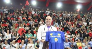 I biri i kreut të PD, Shkëlzen Berisha ndau një foto me të shoqen, Armina Mevlanin ndërsa ishin në mitingun e PD. Krahas fotos Berisha...