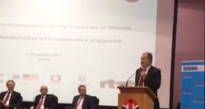I biri i kreut të PD, Shkëlzen Berisha ndau një foto me të shoqen, Armina Mevlanin ndërsa ishin në mitingun e PD. Krahas fotos Berisha...