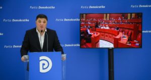 I biri i kreut të PD, Shkëlzen Berisha ndau një foto me të shoqen, Armina Mevlanin ndërsa ishin në mitingun e PD. Krahas fotos Berisha...