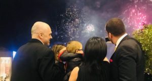 I biri i kreut të PD, Shkëlzen Berisha ndau një foto me të shoqen, Armina Mevlanin ndërsa ishin në mitingun e PD. Krahas fotos Berisha...
