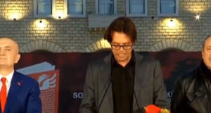 I biri i kreut të PD, Shkëlzen Berisha ndau një foto me të shoqen, Armina Mevlanin ndërsa ishin në mitingun e PD. Krahas fotos Berisha...